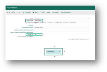 Within the flow proposal, you may also define rules for assigning roles based on authorization criteria. It is recommended to select the "Manager Role" option to further build the flow. The Manager Role is determined from the last role in the established flow.